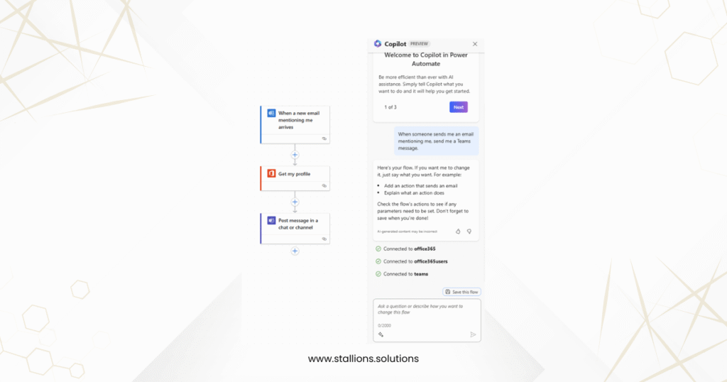 At Stallions Solutions, we help teams prepare for this transformation by strengthening data foundations, implementing governance, and enabling AI-driven automation across departments. With Copilot for Power Automate, work becomes smarter, faster, and more connected than ever before.